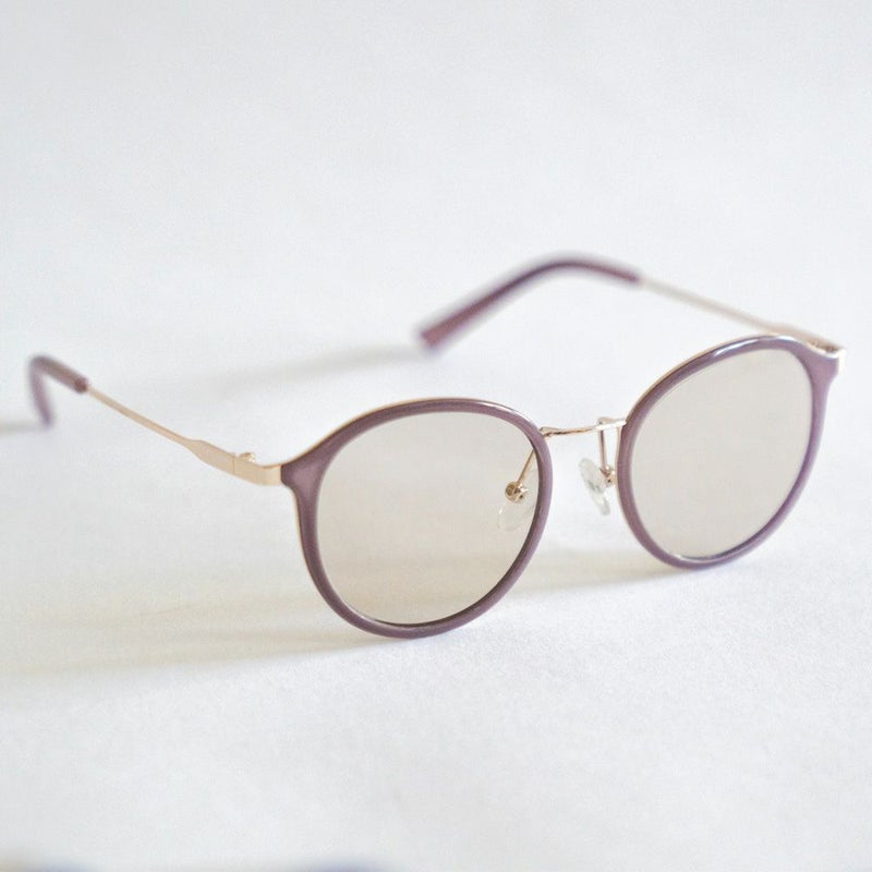 薄紫色のレンズにより目元のクマを中和して、目元を美しく演出。