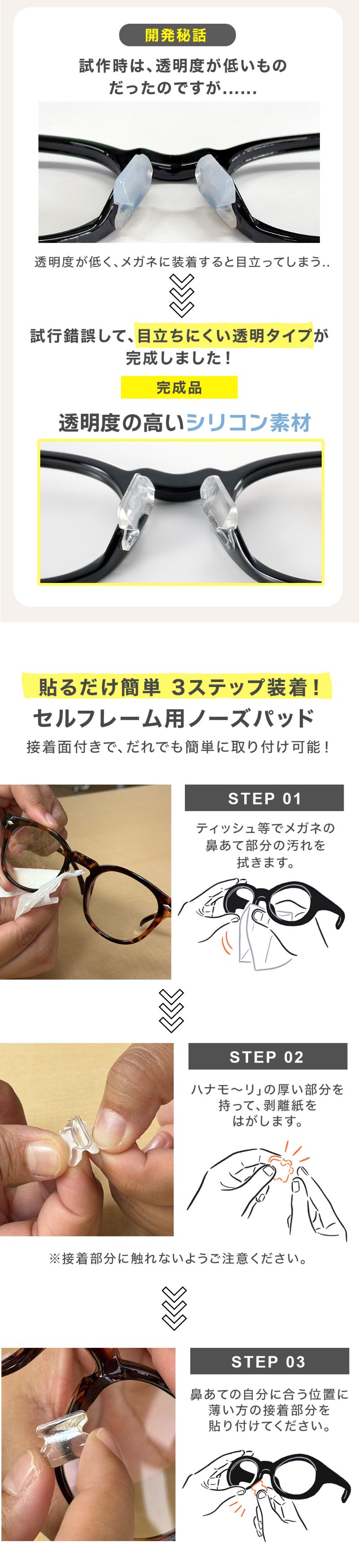 ・当製品接着後のメガネの洗浄はお控えください。