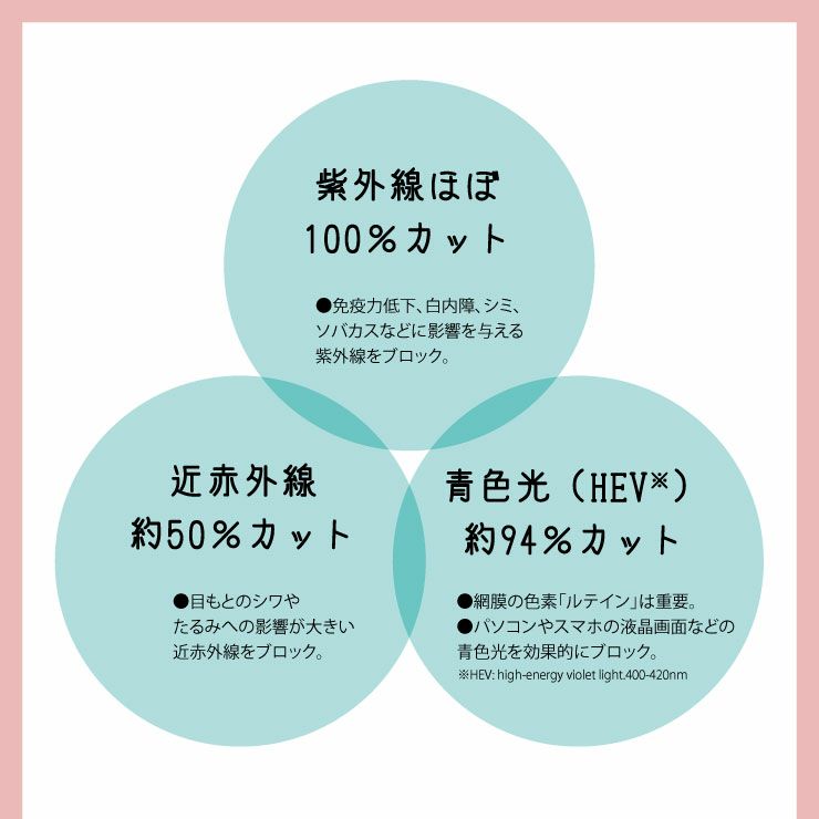 紫外線UV、ルテイン保護、青色光(Blue-Light)、近赤外線に有効です♪