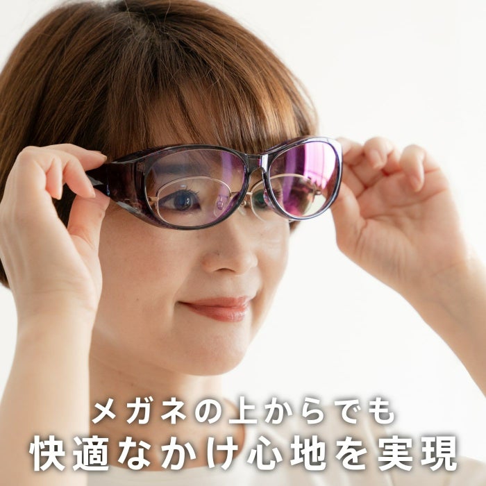 眼鏡をかけた状態での行楽やスポーツ、さらに車の運転など様々なシーンにさっとかけるだけで「目の光対策」ができる手軽さを実現しました。