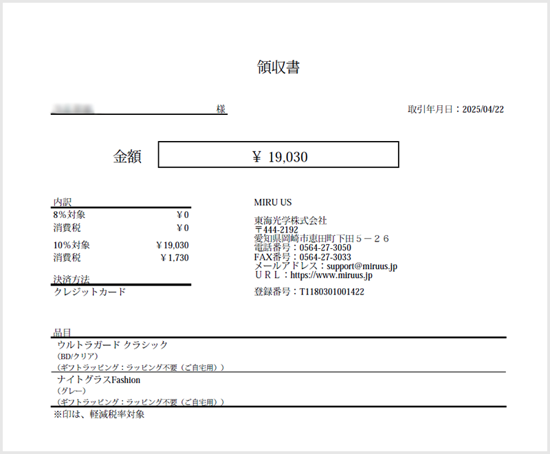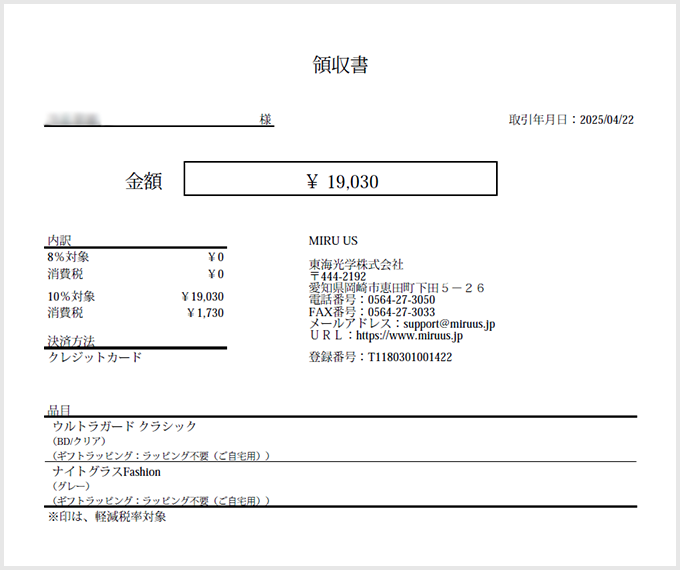 軽減税率 8%※¥1未満は端数切り捨てとなります。