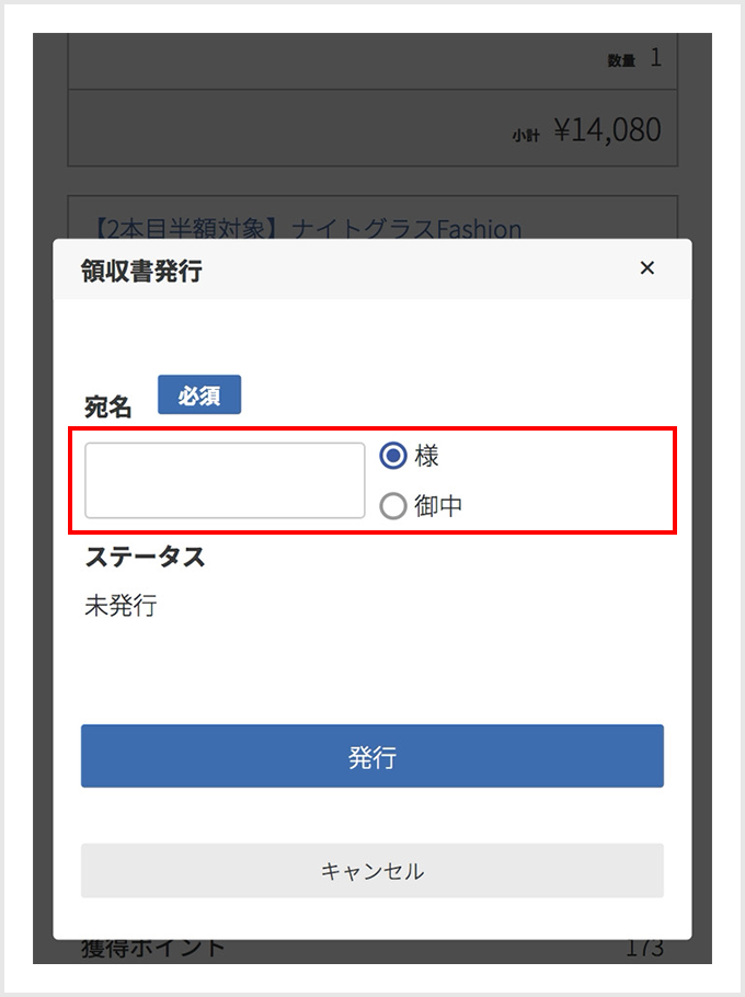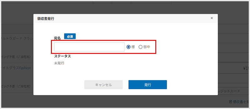 ②該当注文の「領収書を発行する」ボタンを押してください。